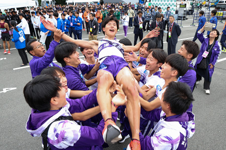 第57回全日本大学駅伝対校選手権は2日、名古屋市の熱田神宮西門前から三重県伊勢市の伊勢神宮内宮宇治橋前までの8区間に27チームが参加して行われ、駒大が2年ぶり、17度目の優勝を果たした=代表撮影 【時事通信社】