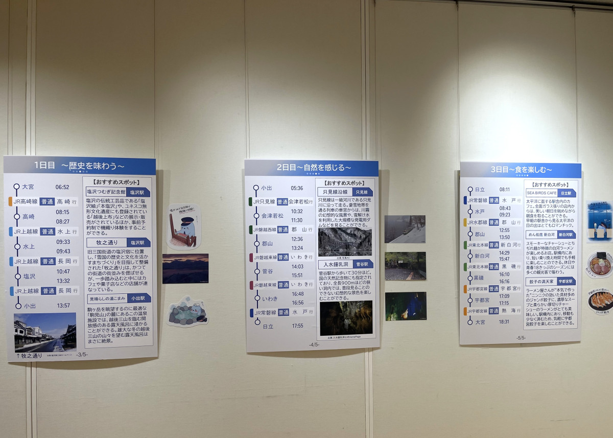 「魅せて、君の旅力!!青春18きっぷ旅行プランコンテスト」展示の様子