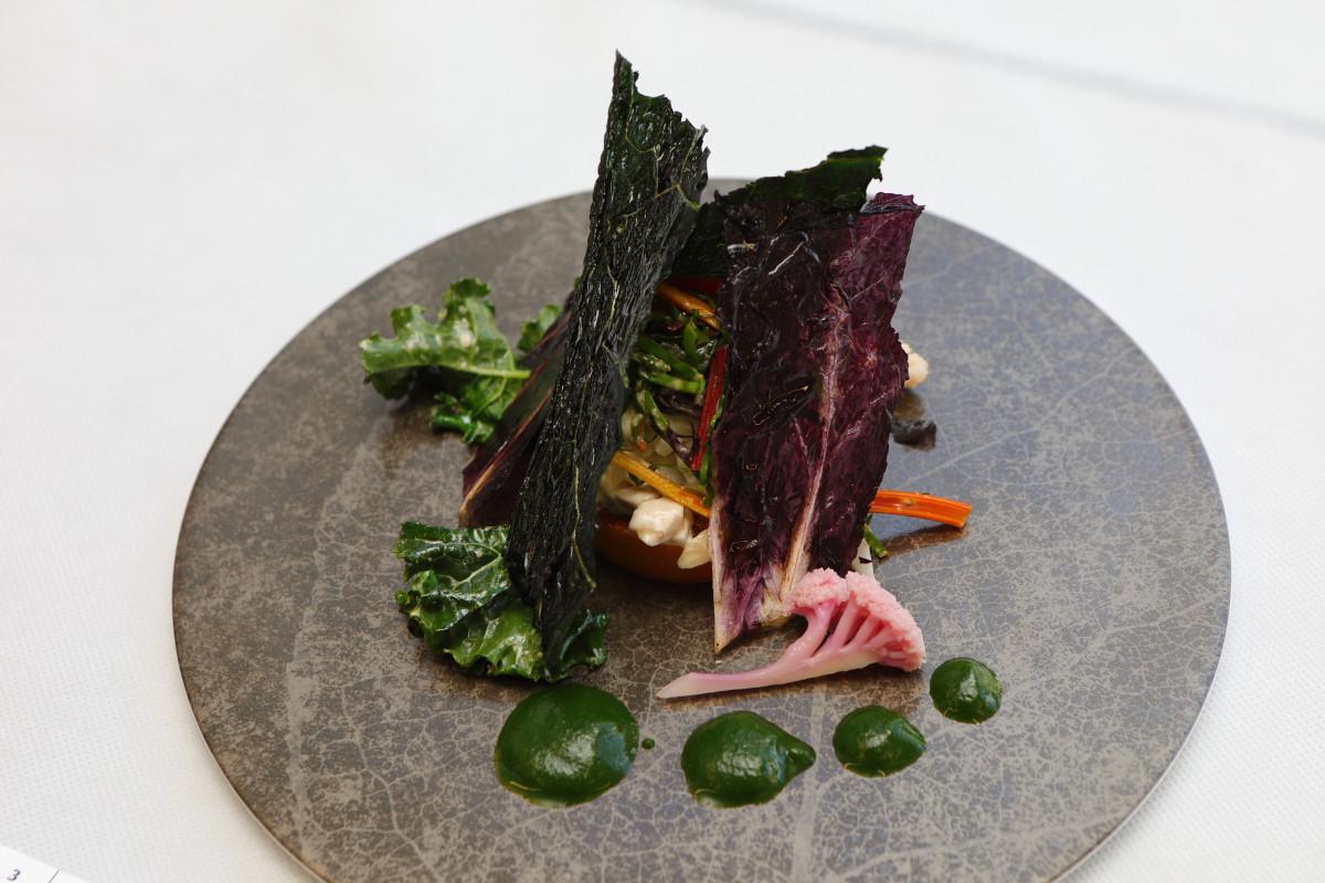 スイーツ部門で市長賞を授賞した砂永裕二さん(おふろcafeハレニワの湯)の「カリフローレのババレーゼ~ヨロ研野菜の畑」