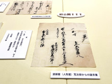 幕末維新期(19世紀)の「大宮宿雛(ひな)屋文書」から見つかった「塗師屋荒次郎からの請求書」も初公開。江戸時代から岩槻で人形の製作・販売が行われていたことを示す貴重な資料だという。