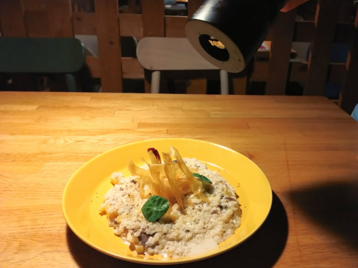 「川越いもと奥秩父産まいたけのリゾット」にはブラックペッパーをお好みで