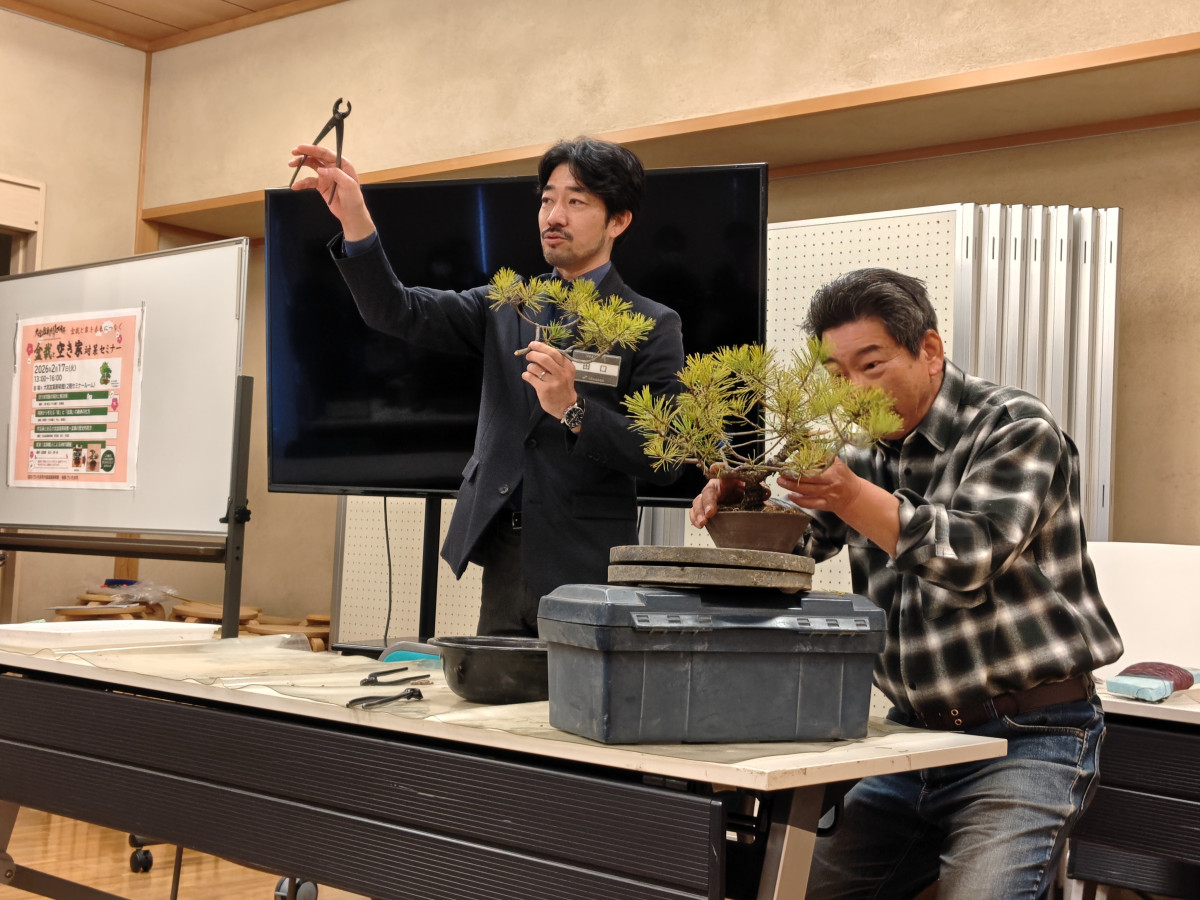 「盆栽と空き家対策セミナー」盆栽づくり実演の様子