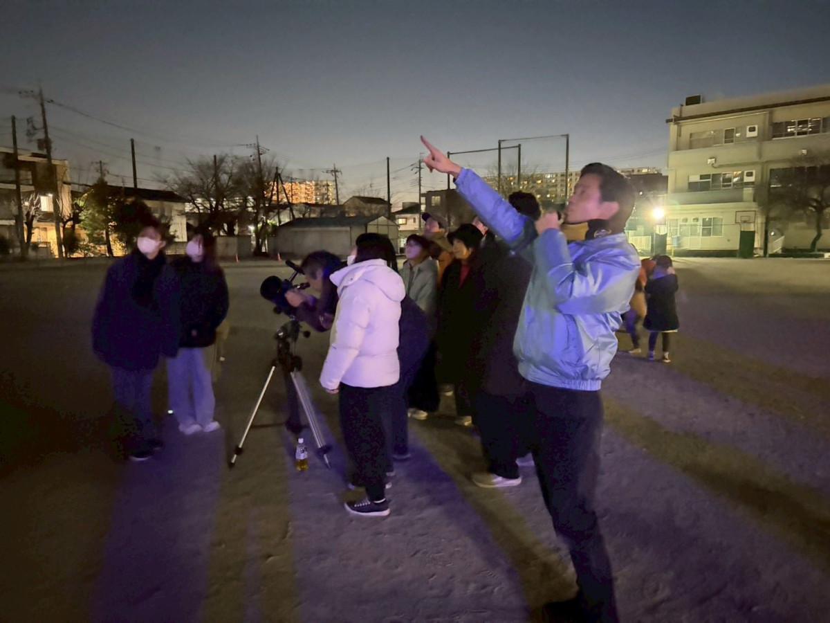 上落合小学校(さいたま市中央区上落合4)で1月24日、天体観望会が開催され、約30人の親子が参加した。