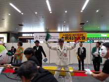 JR大宮駅の東西連絡通路で10月13日、「大宮駅東口・西口対抗連結大綱引き大会」が行われた。