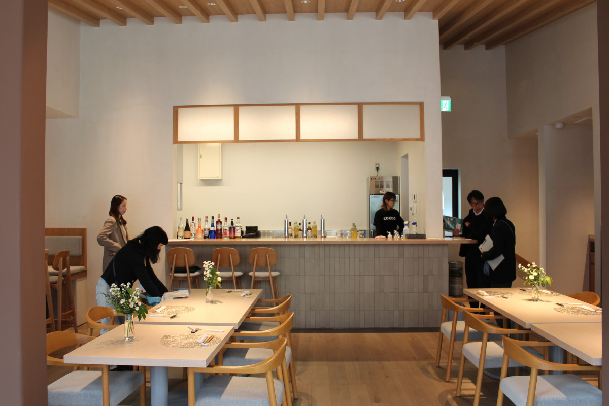 2階SLB THE DININGは約40席、現代的な一汁一菜のコースを味わえる