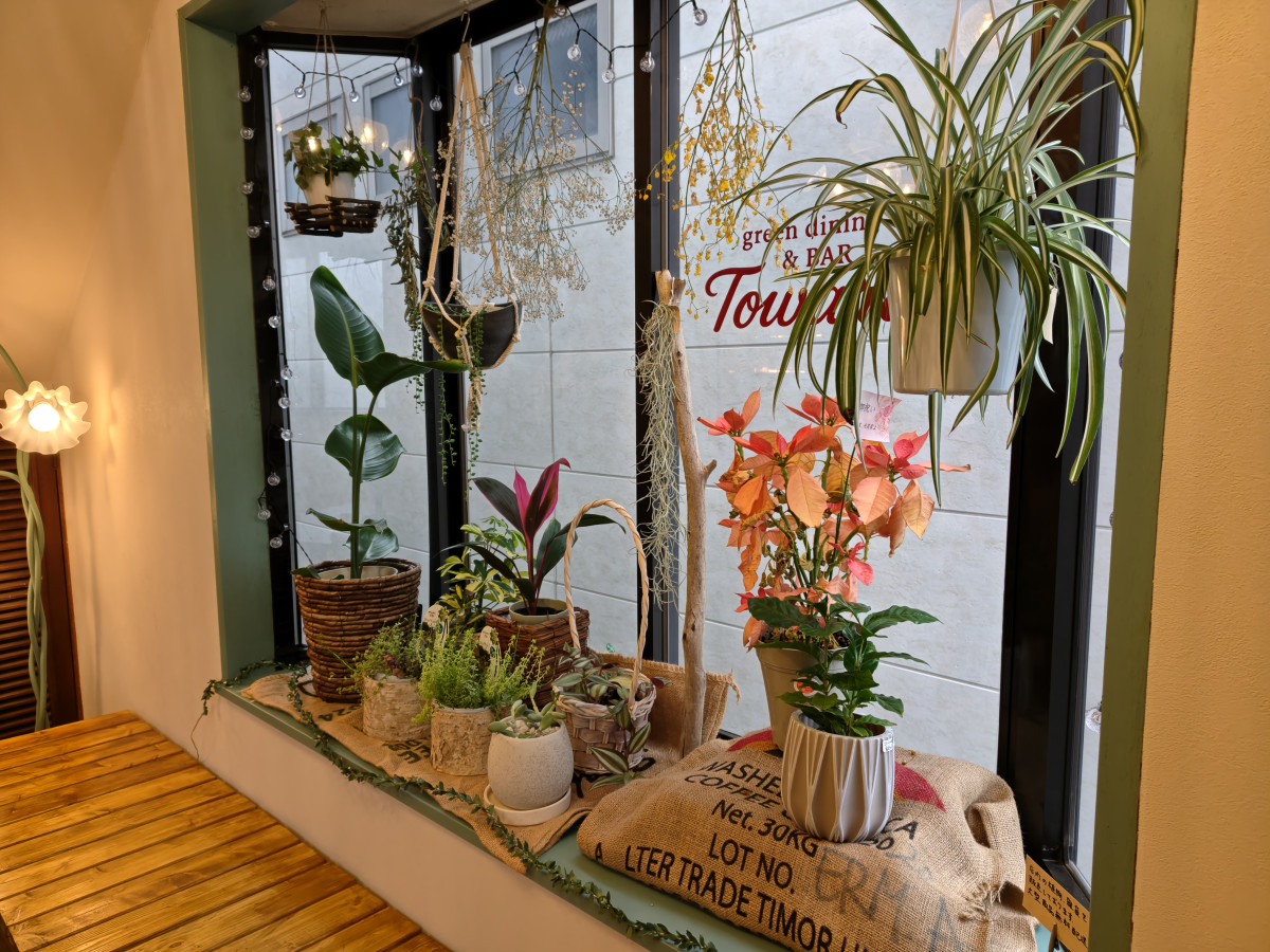 「トワーズ」店内の観葉植物や雑貨は販売もしている