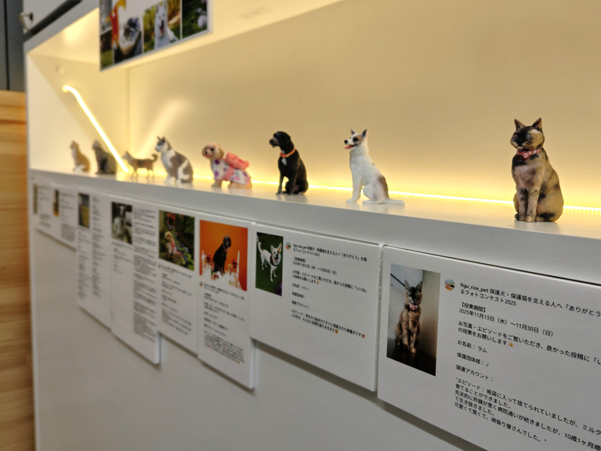 「保護犬・保護猫を支える人へ『ありがとう』を贈るフォトコンテスト2025」入賞作品フィギュアの展示会が現在、大宮駅東口近くの3Dフィギュア制作専門店「FIGURE RIZE(フィギュアライズ)」(さいたま市大宮区宮町1)で開催されている。