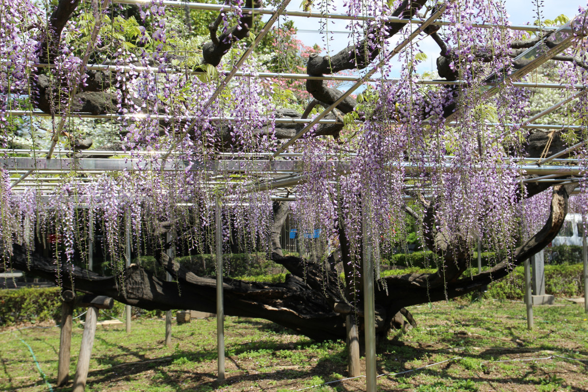 推定樹齢700年とされる埼玉県指定天然記念物のフジが現在、民間墓地公園「青葉園」(さいたま市西区三橋5)で満開の時期を迎えている。