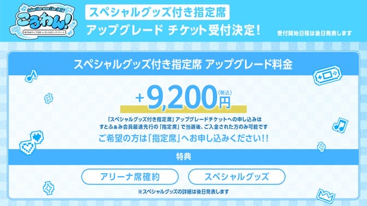 「スペシャルグッズ付き指定席」アップグレードチケットへの申し込みはころわん! -あけおめライブ2026- in さいたまスーパーアリーナ FC最速先行(抽選)の「指定席」で当選後、ご入金された方のみ可能です!