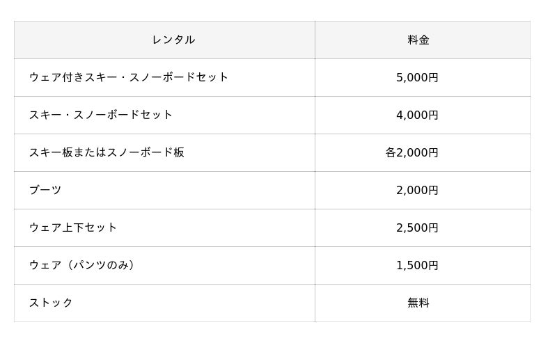 ※用具・ウェアレンタルの際には、別途レンタル料がかかります。