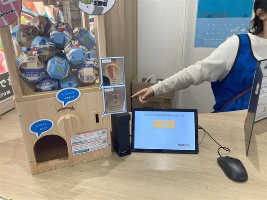 さらに、アンケートにタブレットで回答・送信すると、コインが自動的に発行され、そのコインでトイカプセルマシンを回せるという遊び心のある仕掛けを導入しました。この仕組みは、OI-Start会員である岡山大学発ベンチャー・株式会社MOSAdemyが開発したコイン自動排出装置によって実現したものです。来場者はアンケートに答えることで「トイカプセルマシンを回せる楽しみ」を得られることから、従来よりも回答率が大幅に向上しました。