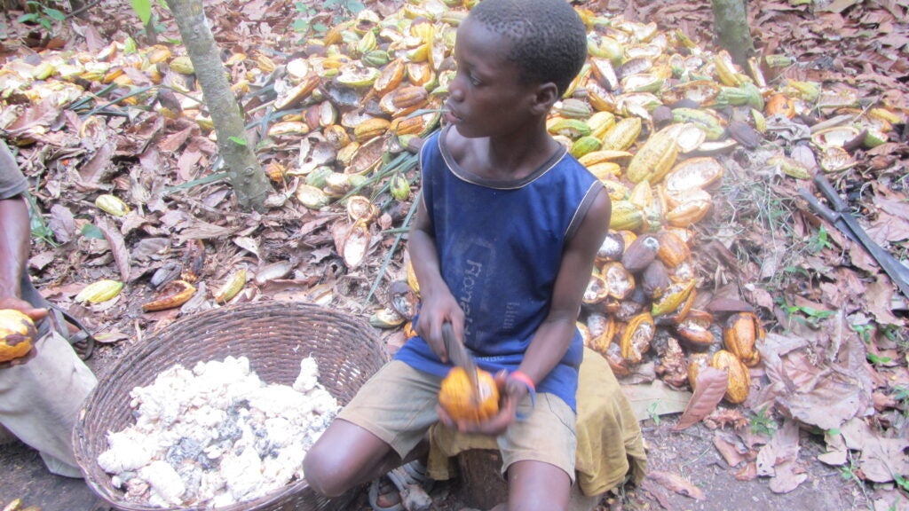 カカオ農園で児童労働をする子ども(C)ACE