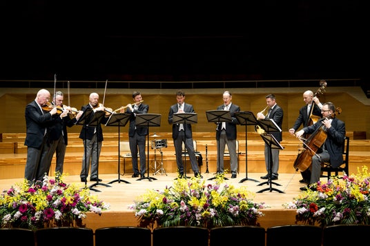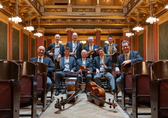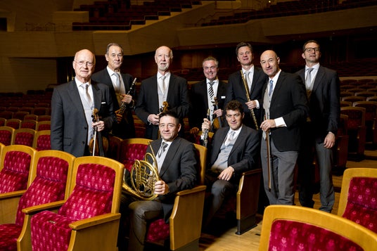 ウィーン・フィルハーモニー管弦楽団の名コンサートマスターとして、45年にわたり同団を率いたライナー・キュッヒルを中心に、ヴァイオリン2人、ヴィオラ、チェロ、コントラバス、フルート、ホルン各1人にクラリネット2人の9人編成で、ウィーン・フィルの腕利きの主要メンバーたちである。
