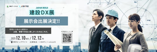 リグテック株式会社(本社:埼玉県川越市、代表取締役社長:岩堀 悠樹)と東和アークス株式会社(本社:埼玉県さいたま市、代表取締役社長:伊田 雄二郎)は、2025年12月10日(水)~12日(金)に東京ビッグサイトで開催される「JAPAN BUILD 2025-建設DX展」 に共同出展いたします。