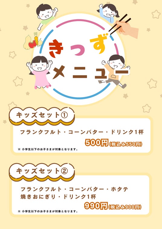 そんな想いから、「牡蠣小屋 かき太鼓」ではお子さまにも嬉しいキッズメニューをご用意しました。
