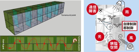 WRSは、ロボット技術の最先端が集まる国際的な競技大会です。標準性能評価ドローンチャレンジでは、災害現場を模した閉鎖環境において、ドローンの運動性能、探査性能、地図作成能力、自律性能が評価されます。