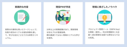 図:プロジェクト管理研修サービス 3つの特徴
