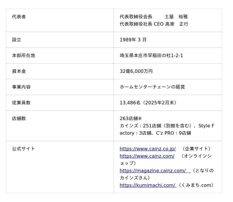 株式会社カインズは、29都道府県下に263店舗を展開するホームセンターチェーンです。