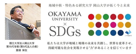 国立大学法人岡山大学は、国連の「持続可能な開発目標(SDGs)」を支援しています。また、政府の第1回「ジャパンSDGsアワード」特別賞を受賞しています。地域中核・特色ある研究大学として共育共創を進める岡山大学にご期待ください