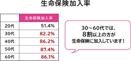 ※上記加入率は、民間の生命保険会社や郵便局、JA(農協)、県民共済・生協等で取り扱っている生命保険や生命共済(個人年金保険やグループ保険、財形は除く)の加入率